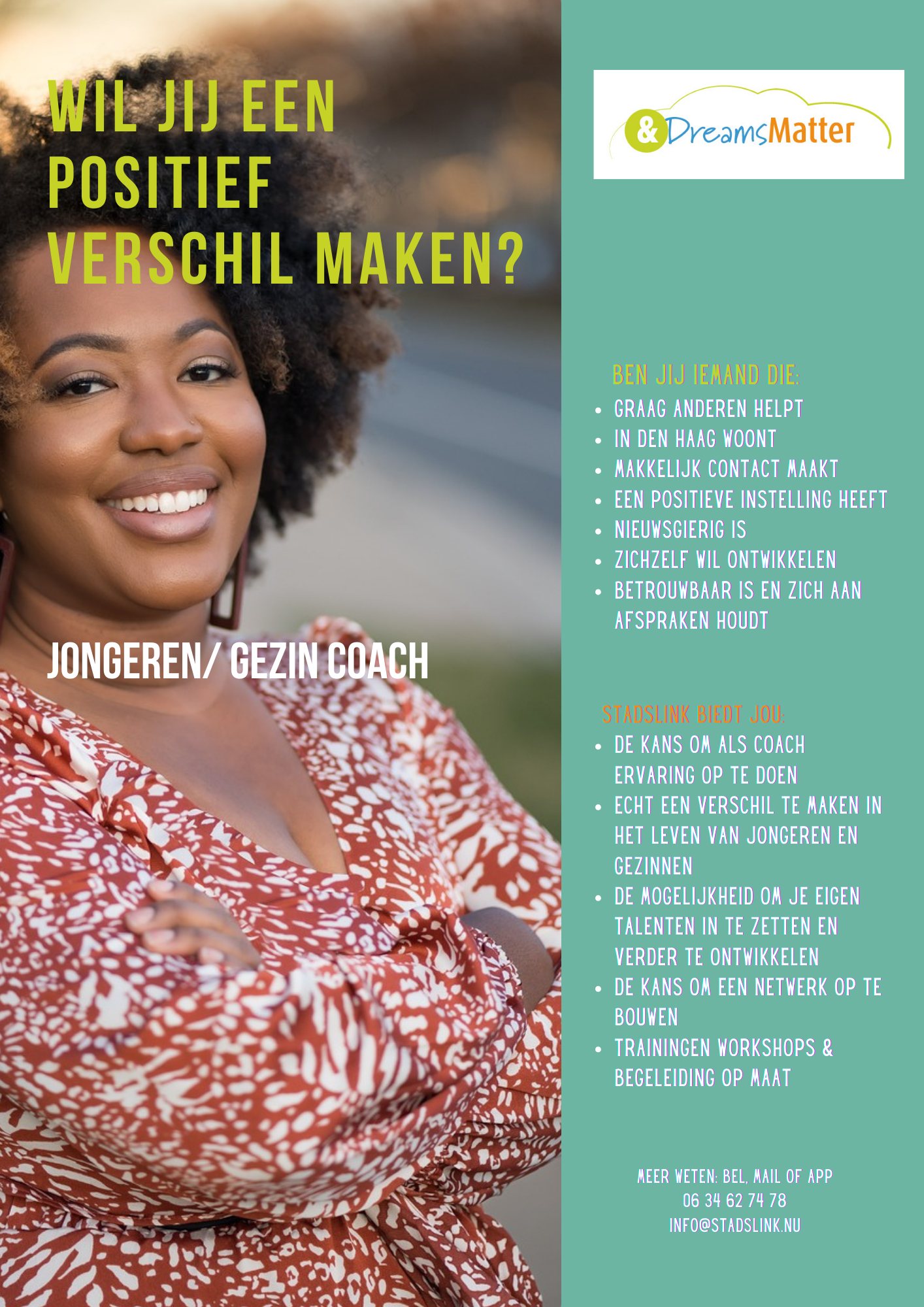 &DreamsMatter is een programma dat zich richt op kwetsbare jongeren oa in Den Haag en Leiden. Het programma richt zich op jongeren die al veel tegenslag hebben gehad in hun leven. Een soepele overgang naar volwassenheid is niet voor alle jongeren een vanzelfsprekendheid. Sommige jongeren gaan in en uit de jeugdzorg, hebben niet altijd een stabiele thuissituatie. En met nauwelijks een netwerk moeten zij het zien te redden in deze tijd. Velen van hen hebben, vaak door omstandigheden, ook nog geen diploma op zak. Kortom, een groep die vraagt om een persoonlijke aanpak.